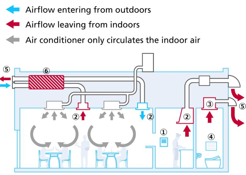 - Cung cấp đủ lượng gió tươi theo mật độ người