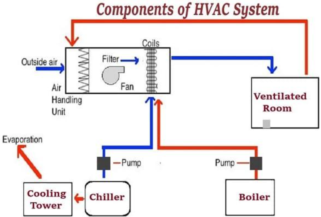 Dưới đây là những thành phần quan trọng nhất trong một hệ thống HVAC hoàn chỉnh:
