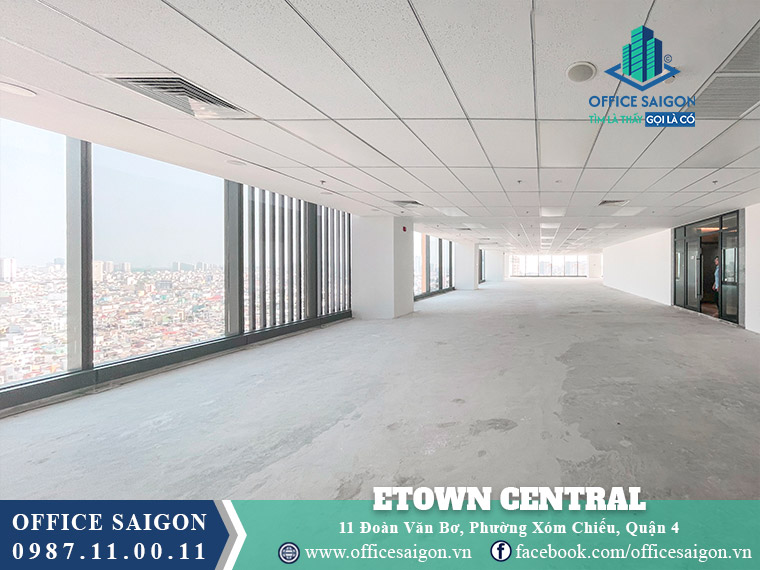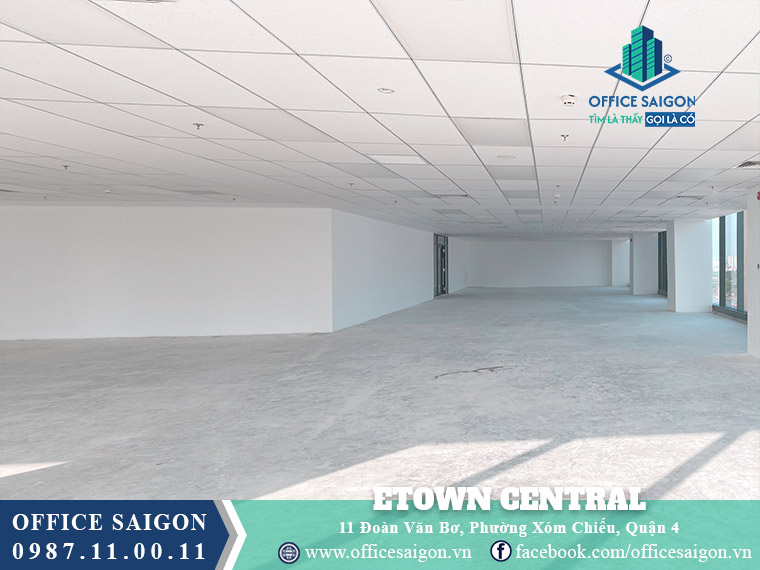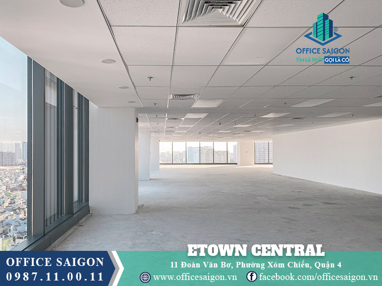Diện tích sàn tại Etown Central là 1.500 m2, tổng diện tích sàn là 45.000m2, độ cao trần là 2.7m.