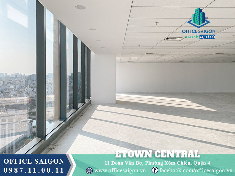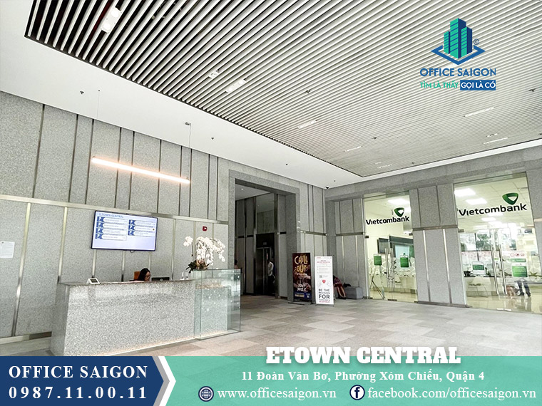 Tòa nhà Etown Central nằm trong chuỗi văn phòng cho thuê Quận 4, là công trình đạt chuẩn LEED Gold, chứng nhận thiết kế thân thiện với môi trường. Không gian làm việc thiết kế theo hướng truyền thống kết hợp với hiện đại, văn phòng Etown Central Quận 4 sử dụng hai tone chủ đạo màu xanh, trắng tinh tế, thanh nhã, nhưng đảm bảo tiêu chuẩn công trình xanh, loại hình cho thuê văn phòng nổi tiếng trong những năm gần đây.