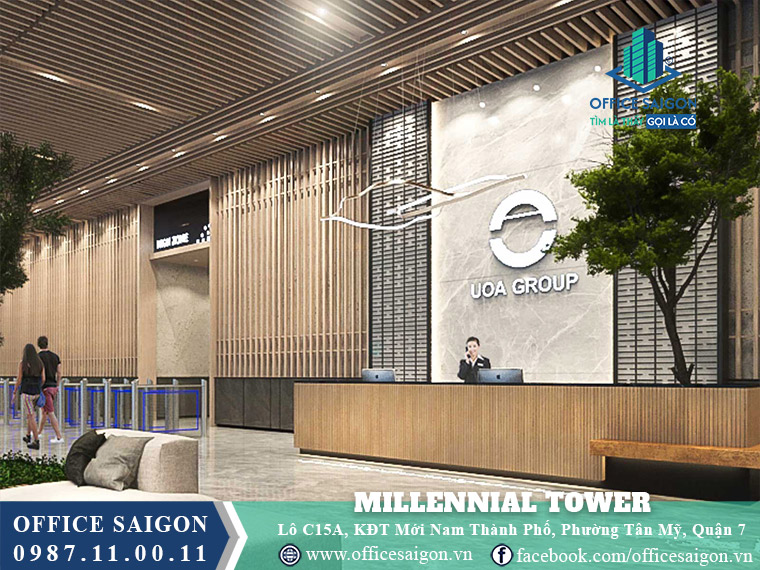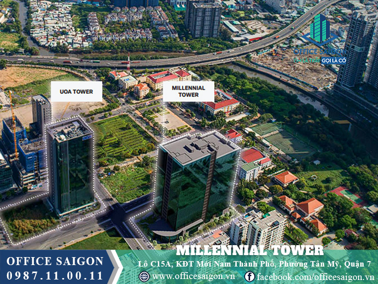 Tòa nhà văn phòng Millennial Tower là 1 tòa nhà văn phòng hạng A do UOA phát triển, cao 24 tầng với diện tích cho thuê thuần khoảng 44.487 m², mức giá thuê trung bình trong khu vực Quận 7 từ khoảng 20-35 USD/m²/tháng, phù hợp phân khúc doanh nghiệp vừa và nhỏ, startup, công ty công nghệ tìm kiếm văn phòng hiện đại, linh hoạt và chuyên nghiệp tại khu Nam Sài Gòn.