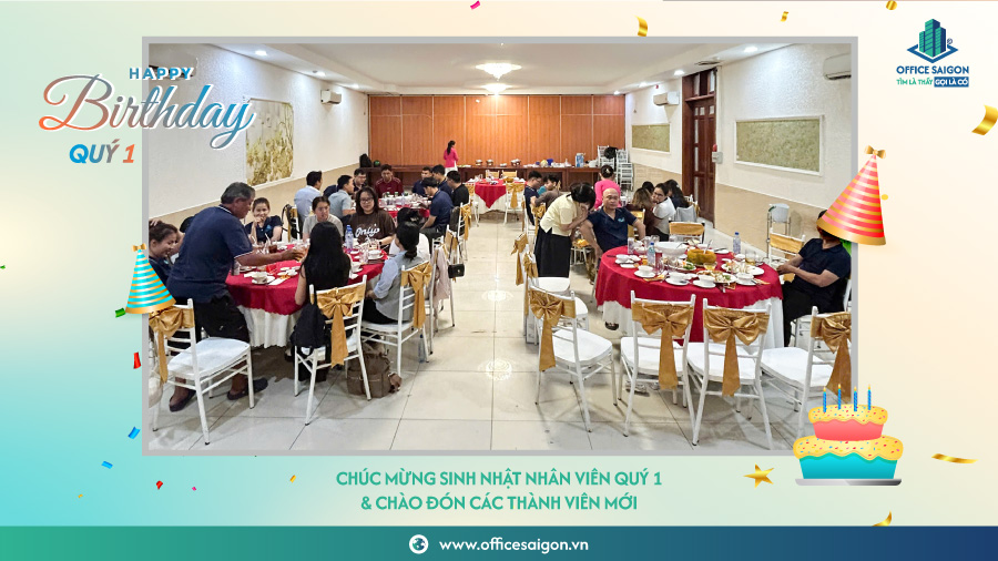 Ngày 28/03/2026 vừa qua, Office Saigon đã tổ chức buổi tiệc sinh nhật dành cho các thành viên có ngày sinh trong Quý I, đồng thời chào đón những “mảnh ghép mới” gia nhập đội ngũ. Không cần sự cầu kỳ hay hoành tráng, buổi tiệc diễn ra trong không khí ấm cúng, nơi những tiếng cười, những cái bắt tay và sự hiện diện của đồng nghiệp đã đủ để tạo nên một kỷ niệm đáng nhớ. Đây không chỉ là một hoạt động nội bộ thường niên, mà còn là dịp để tập thể nhìn lại hành trình đã qua và cùng nhau khởi động một chặng đường mới đầy năng lượng.