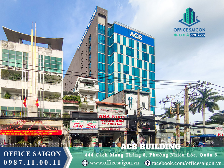 Tòa nhà ACB Tower tọa lạc tại số 444 Cách Mạng Tháng 8, Phường 11, Quận 3. Văn phòng này có kết cấu xây dựng vững chắc, mang đến thị trường văn phòng cho thuê TP HCM nhiều diện tích thuê linh hoạt và hấp dẫn. Bên cạnh đó, ACB Tower còn sở hữu vị trí giao thông thuận tiện, giá thuê hợp lý và được trang bị đầy đủ các tiện ích hiện đại, hứa hẹn là sự lựa chọn ưu tiên của nhiều doanh nghiệp lớn trong và ngoài nước.