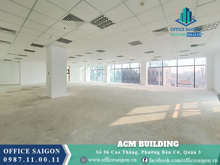 Tòa nhà văn phòng ACM Building nằm tại số 96 Cao Thắng, Phường Bàn Cờ (Quận 3), vị trí nằm giữa khu vực các ngã tư, vòng xoay lớn dẫn đến các quận trung tâm của thành phố. ACM Building đem đến tổng diện tích sử dụng là 5.200m2, với giá thuê dao động 20-22 USD/m2, tiện ích và cơ sở hạ tầng lý tưởng, là lựa chọn phù hợp cho doanh nghiệp.
