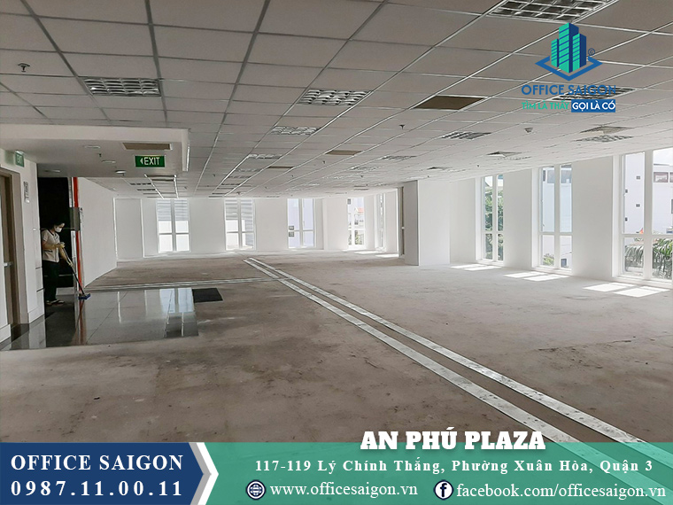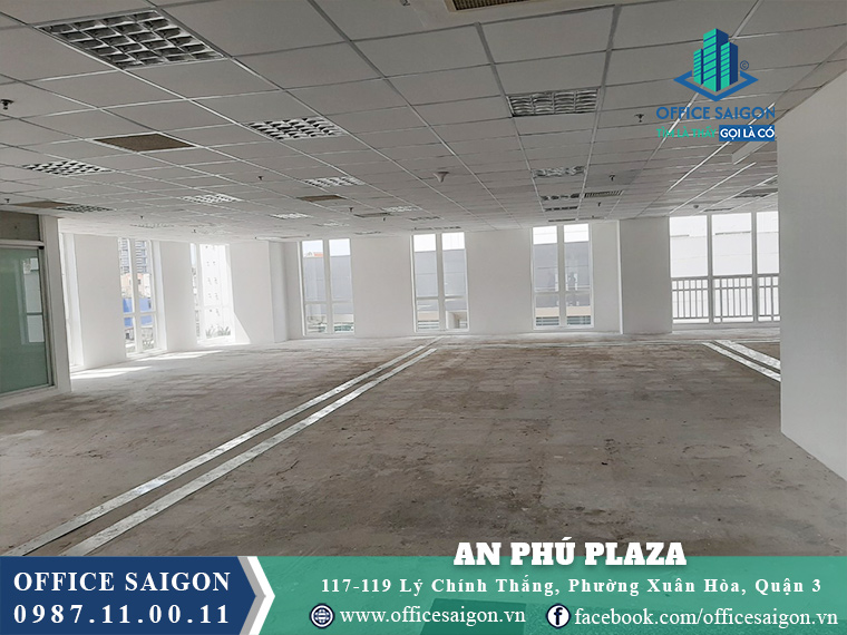 AN PHÚ PLAZA BUILDING có sàn văn phòng rất đẹp, trần cao, không vướng cột tối ưu không gian văn phòng, nhân viên quản lý chuyên nghiệp