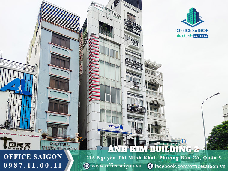 Tòa nhà Ánh Kim 2 Building tọa lạc trên mặt tiền đường Nguyễn Thị Minh Khai, tuyến đường quan trọng của thành phố thuận tiện di chuyển sang các quận lân cận. Xung quanh tòa nhà tập trung nhiều cao ốc cho thuê văn phòng, căn hộ cao cấp, nhà hàng ăn uống, trung tâm thương mại,... Ánh Kim 2 Building có kết cấu xây dựng 1 trệt - 7 tầng, cung cấp 700m2 diện tích văn phòng cho thuê tại quận 3, thích hợp cho các doanh nghiệp vừa và nhỏ.