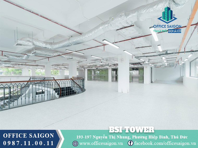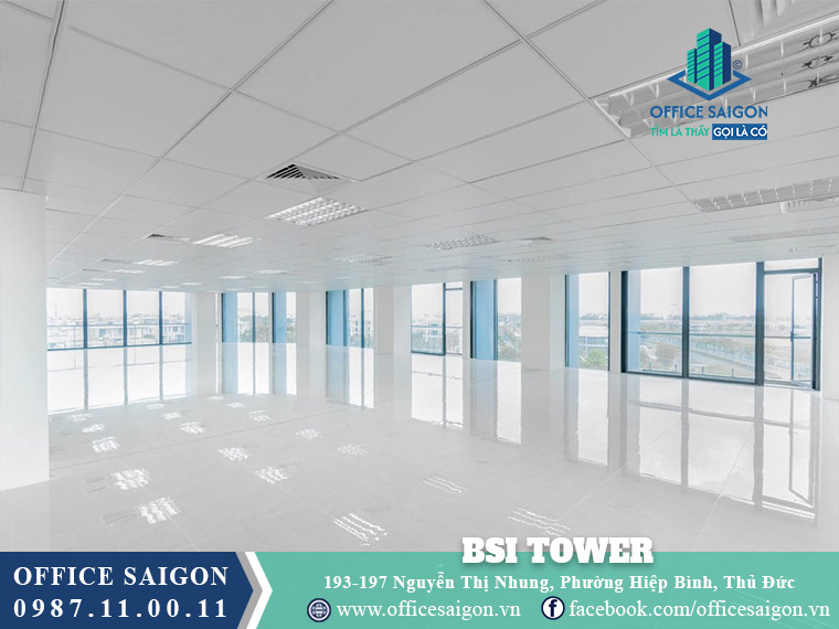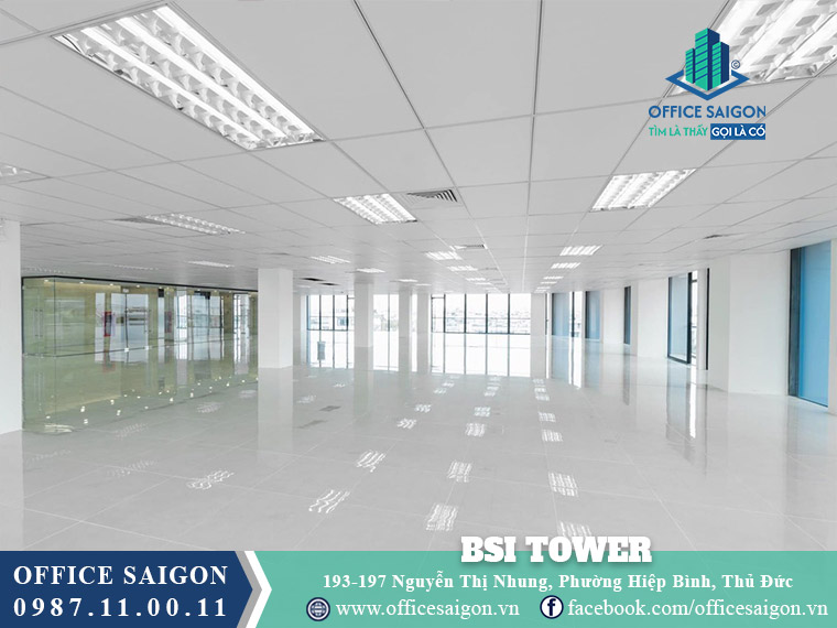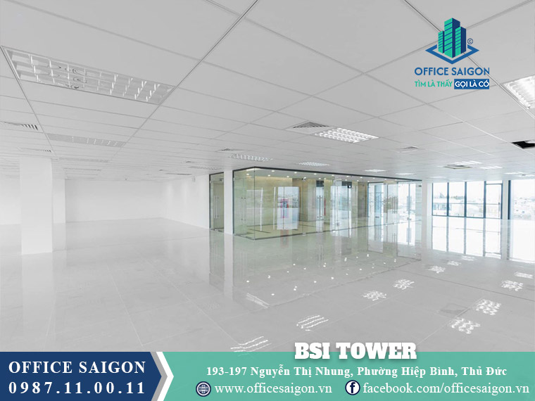 Tòa nhà dịch vụ cho thuê văn phòng tại phường Hiệp Bình quận Thủ Đức - BSI tower có tổng diện tích cho thuê trên 6000m2 với kết cấu gồm 1 trệt + 1 lửng + 6 tầng. Tòa nhà có lối thiết kế hiện đại, sáng tạo, đem đến diện tích thuê đa dạng, thích hợp với nhu cầu thuê văn phòng của hầu hết các đối tượng doanh nghiệp. Bên cạnh đó, giá thuê hợp lý là một ưu điểm không thể bỏ qua khi nhắc đến tòa cao ốc văn phòng cho thuê này.