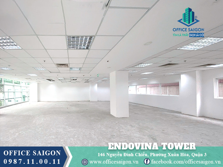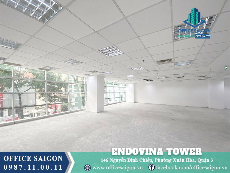 Tòa nhà văn phòng Endovina Tower đặt địa chỉ tại 146 Nguyễn Đình Chiểu, Phường Xuân Hoà (Quận 3), sở hữu vị trí ngay mặt tiền đường đắt giá, là một vị trí lý tưởng, thuận tiện di chuyển sang các quận trung tâm khác. Endovina Tower có diện tích sử dụng lên đến 5.000m2 với giá thuê dao động 22-24 USD/m2, là một lựa chọn hoàn hảo cho nhiều doanh nghiệp.