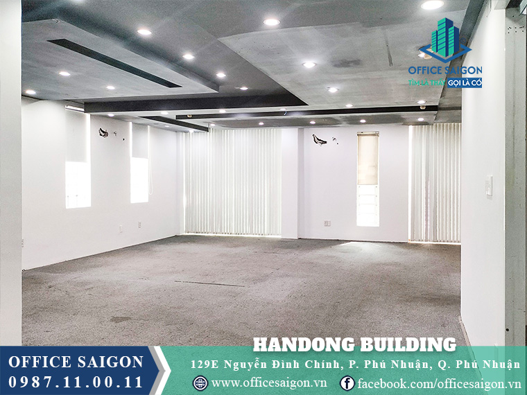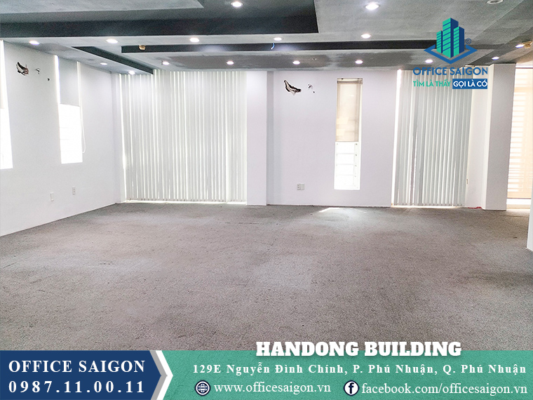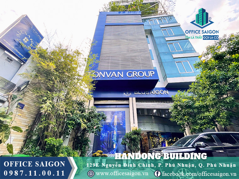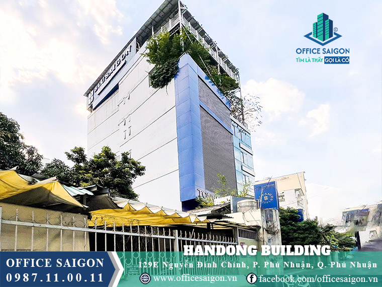 Tòa nhà văn phòng Han Dong Building nằm ở địa chỉ 129E Nguyễn Đình Chính, Phường Phú Nhuận, TP.HCM. Đây là khu tam giác vàng Quận 1, Quận 3, Quận Phú Nhuận, kết nối tới trung tâm thành phố, sân bay Tân Sơn Nhất hay các quận khác nhanh chóng. Tòa nhà Handong building với thiết kế hiện đại, mặt tiền rộng, tầm nhìn thoáng và nhiều tiện ích dịch vụ. Handong Building là tòa nhà văn phòng cho thuê diện tích linh hoạt dành cho doanh nghiệp.