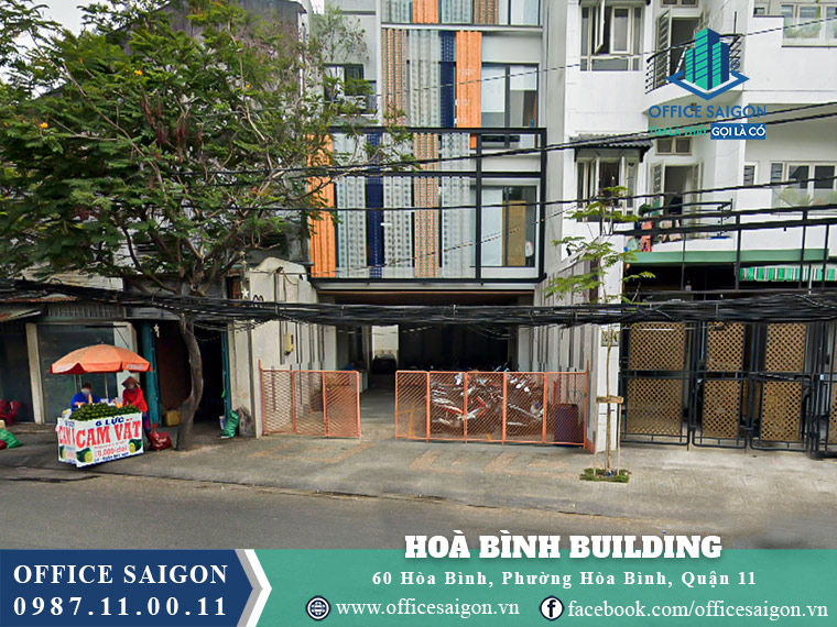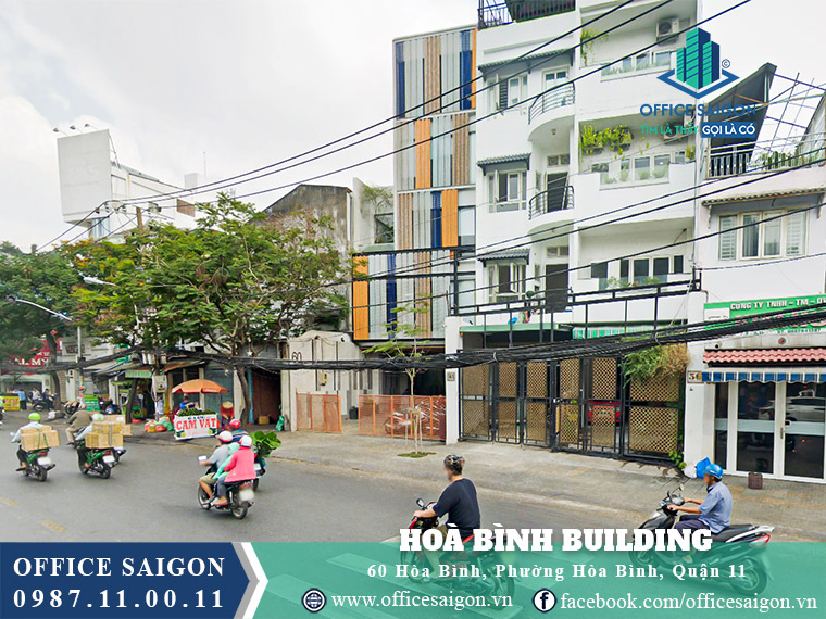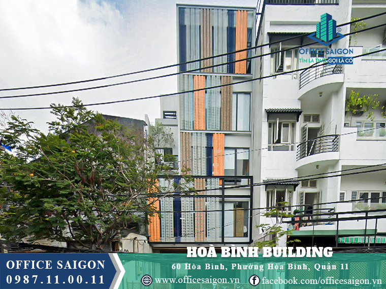 Tòa nhà văn phòng Hòa Bình Building có địa chỉ tại số 60 Hòa Bình, Phường 5, Quận 11. Tòa nhà nằm trên mặt tiền đường Hòa Bình, tuyến đường nội khu sầm uất uất, cắt ngang tuyến đường Lạc Long Quân và Lũy Bán Bích.
