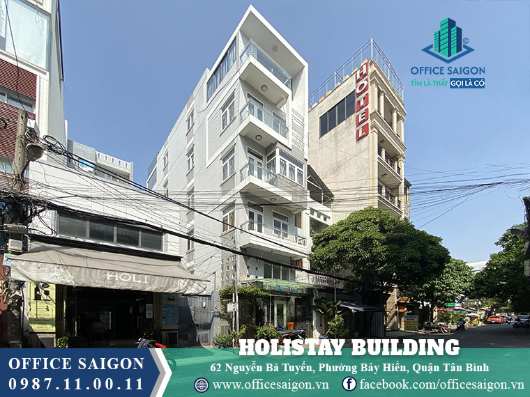 Tòa nhà văn phòng Holistay Building là tọa lạc tại địa chỉ số 62 Nguyễn Bá Tuyển, Phường 12, Quận Tân Bình, Tp.HCM. Tòa nhà nằm ngay mặt tiền, trên tuyến đường 2 chiều có giao thông thuận tiện kết nối với trục đường Cộng Hòa, Trường Chinh, Hoàng Hoa Thám và di chuyển sang quận Tân Phú, quận Phú Nhuận, quận Gò Vấp.