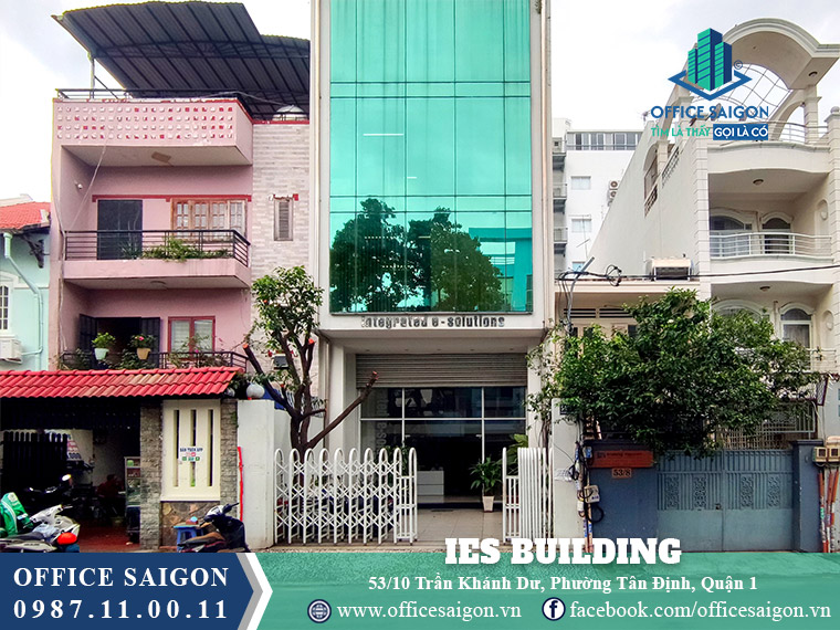 Tòa nhà IES Building là cao ốc văn phòng cho thuê, tọa lạc tại số 53/10 Trần Khánh Dư, Phường Tân Định, (Quận 1) TPHCM. Nơi đay cung cấp không gian văn phòng cho thuê, phù hợp với các doanh nghiệp vừa và nhỏ, hoặc văn phòng đại diện. Diện tích cho thuê linh 65m² mỗi sàn và giá thuê thiết kiệm chỉ từ 10 - $12/m²/tháng.