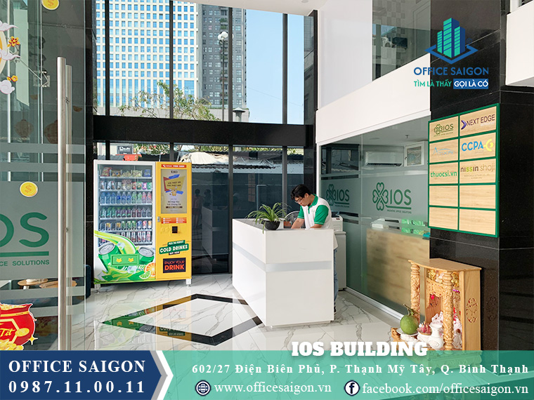 Tòa nhà IOS Building tọa lạc tại số 602/27 Điện Biên Phủ, Phường 22, Phường 22. Tuy vị trí nằm bên trong hẻm, hẻm lớn và xe ô tô di có thể di chuyển vào. Vị trí văn phòng cũng nằm gần trung tâm, khách hàng có thể dễ dàng tiếp cận quận 1, quận 2, quận 3, quận Phú Nhuận và các khu vực lân cận khác.
