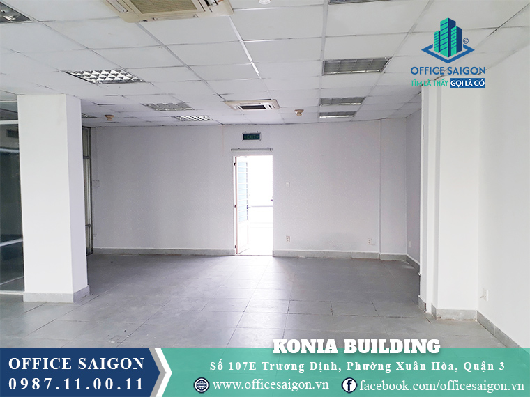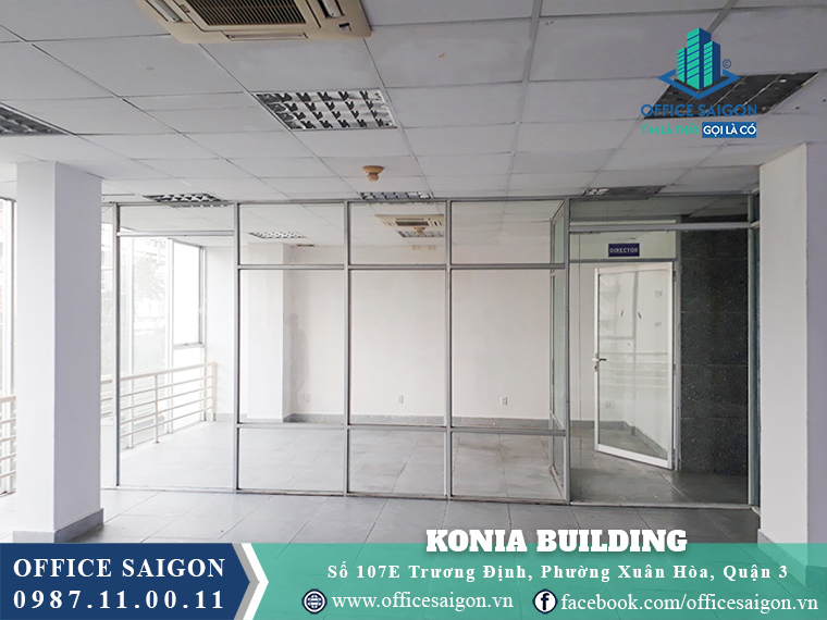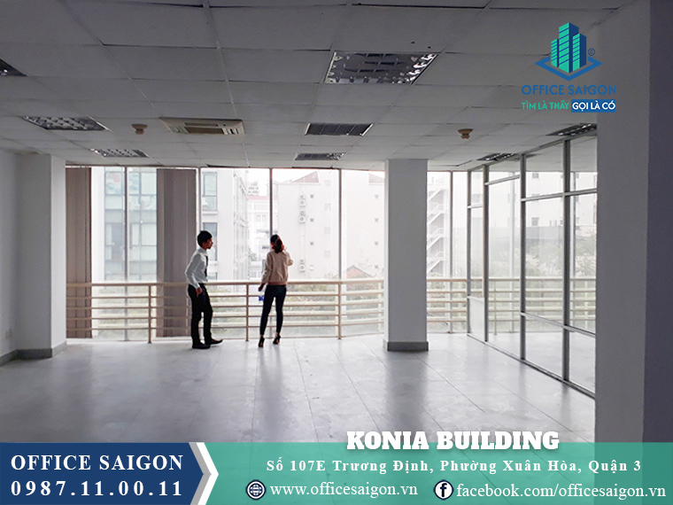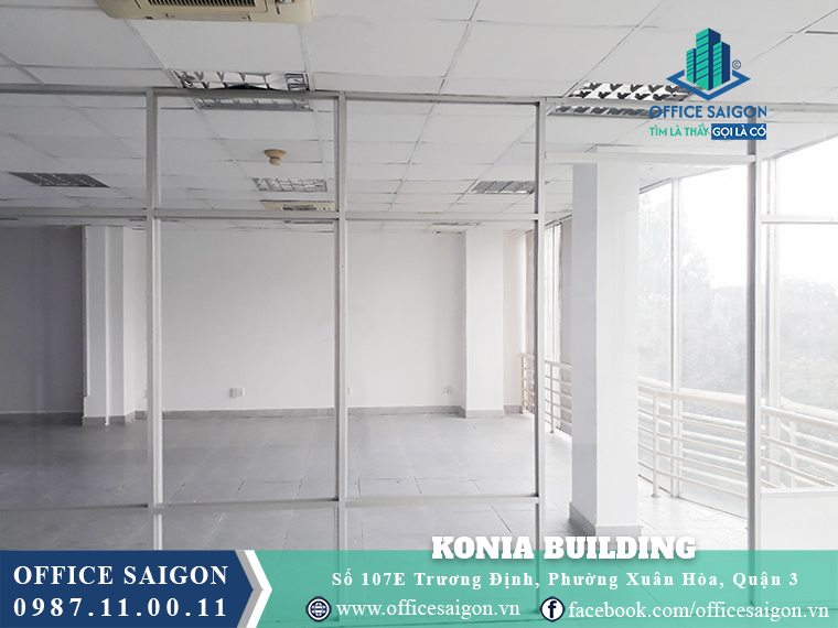 Toà nhà Konia nằm ở khu vực quận 3, giá thuê hợp lý. Toà nhà có view kính xung quanh sáng sủa