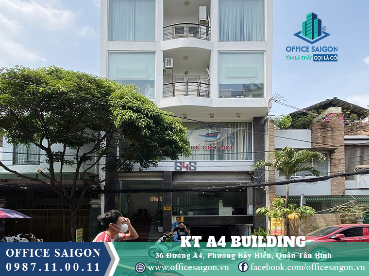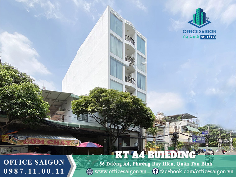 Tòa nhà KT A4 Building tại số 36 Đường A4, Phường Bảy Hiền, TP.HCM với giá thuê khoảng 12-14 USD/m² và diện tích cho thuê từ 40 đến 110 m². Vị trí thuộc khu K300 gần sân bay Tân Sơn Nhất thuận tiện giao thông và kết nối các trục đường lớn cùng thiết kế 4 tầng, mặt tiền kính và thang máy hiện đại tạo môi trường làm việc hiệu quả.