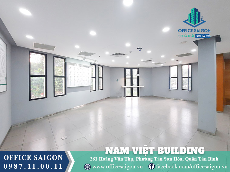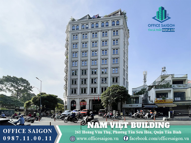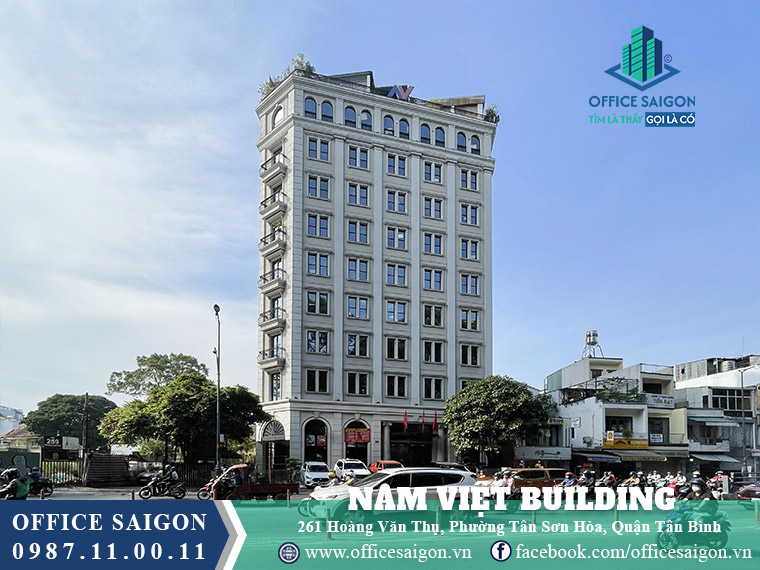Tòa nhà Nam Việt Building tọa lạc tại 261 Hoàng Văn Thụ, Phường Tân Sơn Hòa, TP.HCM với giá thuê khoảng 13-15 USD/m² và diện tích sàn tiêu chuẩn khoảng 250 m²/tầng. Vị trí mặt tiền ngay gần sân bay Tân Sơn Nhất cùng kiến trúc 9 tầng + 1 hầm và trang bị hệ thống tiện ích đa dạng đến môi trường làm việc linh hoạt cho doanh nghiệp vừa và nhỏ.