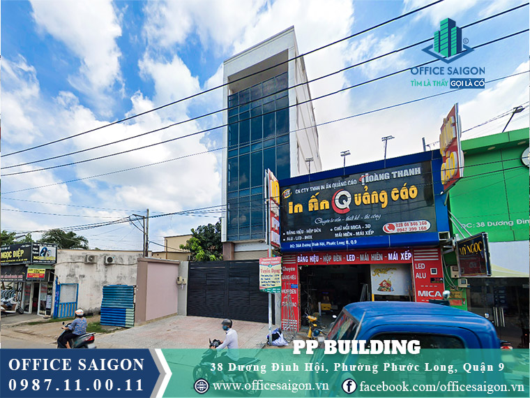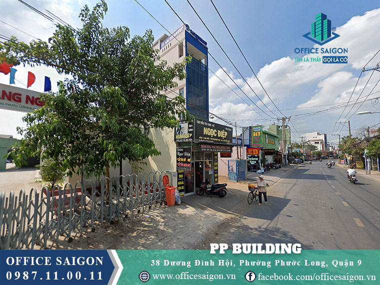 Tòa nhà văn phòng PP Building tọa lạc tại 38 Dương Đình Hội, phường Phước Long B, Quận 9. Đây là tuyến đường nối Tp.HCM với Tp.Biên Hòa và còn là tuyến lưu thông thuận lợi qua Quận Bình Thạnh, Quận 2 và Thủ Đức. Hệ thống giao thông và cơ sở hạ tầng được đầu tư đồng bộ là một lợi thế giúp khu vực hu hút vốn đầu tư từ các doanh nghiệp lớn. Chính vì thế, ngày càng nhiều công ty lựa chọn thuê tòa nhà văn phòng tại vị trí này để hoạt động kinh doanh.