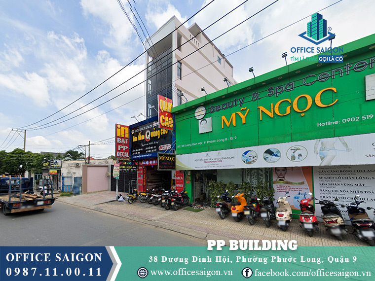 Tòa nhà cho thuê văn phòng PP Building nằm tại địa chỉ 38 Dương Đình Hội, hường Phước Long B, Quận 9. Tòa nhà thuộc chuỗi văn phòng cho thuê hạng C, mang đến nguồn cung văn phòng chuyên nghiệp tại Quận 9. Vị trí tọa lạc của toà nhà được đánh giá là khá thuận tiện và có nhiều lợi thế để đặt trụ sở văn phòng theo chuyên gia đề xuất vì kết nối chặt chẽ với các trục giao thông chính nhưng lại không bị ảnh hưởng bởi kẹt xe hay tiếng ồn.