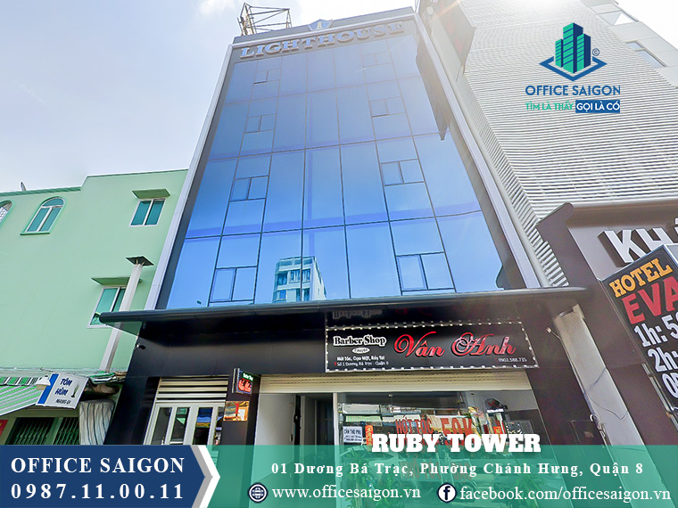 Tòa nhà cho thuê văn phòng Ruby Tower tọa lạc tại 01 Dương Bá Trạc, Phường 1, Quận 8, tuyến đường nối liền Quận 5, Quận 4, Quận 1 thông qua cầu Nguyễn Văn Cừ; lưu thông dễ dàng đến khu Trung Sơn và Quận 7. Tòa nhà nằm trong khu dân cư sầm uất, gần cơ quan nhà nước và các tòa nhà văn phòng cho thuê Quận 8.
