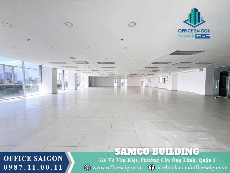 Samco Building là cao ốc văn phòng hạng C tại 326 Võ Văn Kiệt, Quận 1. Tòa nhà 8 tầng và có 1 hầm, diện tích mỗi sàn 1000m². Cung cấp văn phòng cho thuê linh hoạt từ 150-1000m² với giá thuê cạnh tranh $18-$20/m²/tháng, là lựa chọn hiệu quả cho các doanh nghiệp cần văn phòng giá tốt tại trung tâm thành phố.