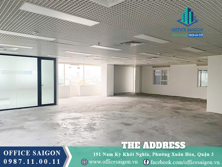 Tòa nhà The Address Building tọa lạc tại số 191 Nam Kỳ Khởi Nghĩa, Phường Xuân Hoà (Quận 3), đây là tuyến đường quan trọng nối liền giao thông giữa Quận 1, Quận 3, Quận Phú Nhuận và sân bay. The Address Building đem đến tổng diện tích sử dụng là 4.232m2, với giá thuê dao động 30-32 USD/m2, hứa hẹn sẽ là địa điểm cho thuê được nhiều doanh nghiệp lựa chọn.