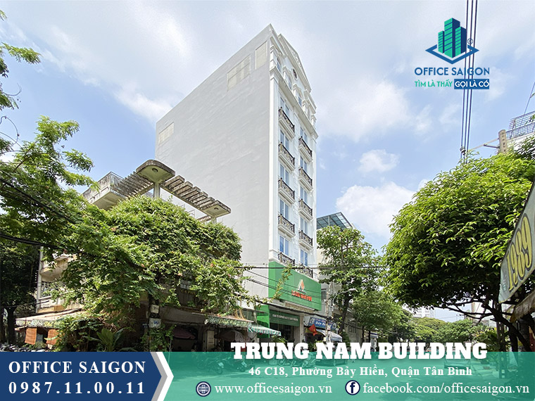 Tòa nhà Trung Nam Building tại số 46 Đường C18, Phường Bảy Hiền, TP.HCM với giá thuê từ khoảng 5-7 USD/m²/tháng và diện tích cho thuê mỗi sàn khoảng 100 m². Vị trí nằm ngay khu K300 sát sân bay Tân Sơn Nhất thuận tiện giao thông và nằm gần cơ quan hành chính giúp tiết kiệm thời gian vận hành cho doanh nghiệp.