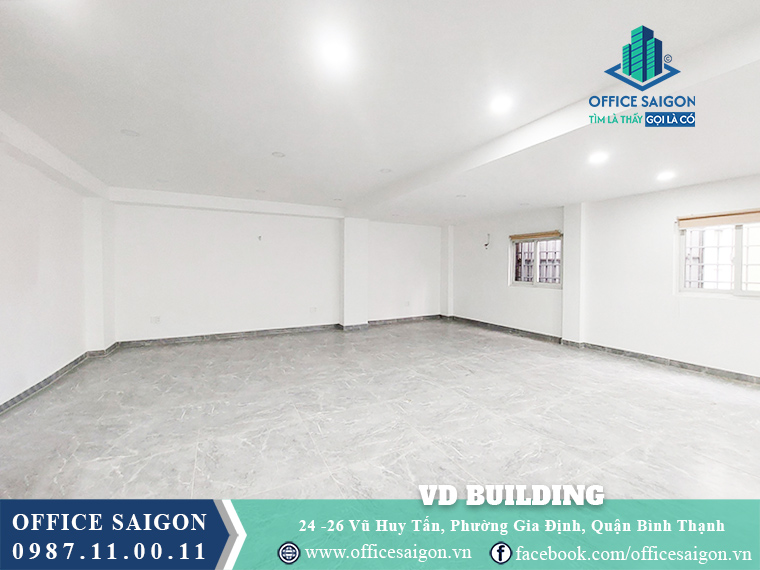 Tòa nhà có tổng diện tích sàn lên đến 2.000m², được xây dựng theo mô hình văn phòng cho thuê chuyên nghiệp, gồm 5 tầng nổi, thiết kế không gian thông thoáng và ánh sáng tự nhiên. VD Building cung cấp nhiều lựa chọn diện tích linh hoạt, đáp ứng nhu cầu thuê từ văn phòng đại diện nhỏ đến doanh nghiệp quy mô trung bình. Đây là một lựa chọn phù hợp cho những ai đang tìm kiếm văn phòng cho thuê phường Gia Định với ngân sách tối ưu.
