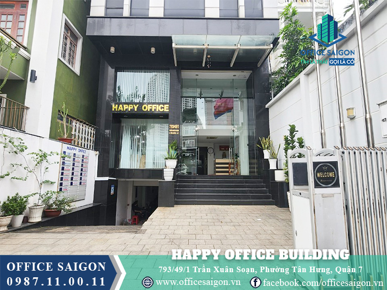 Tòa nhà cho thuê văn phòng Happy Building tọa lạc trên đường Trần Xuân Soạn, Quận 7. Vị trí nằm ở khu vực biệt lập, không gian yên tĩnh, an ninh, gần trường đại học.