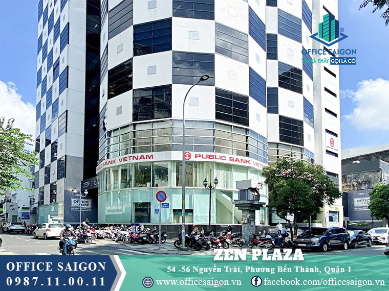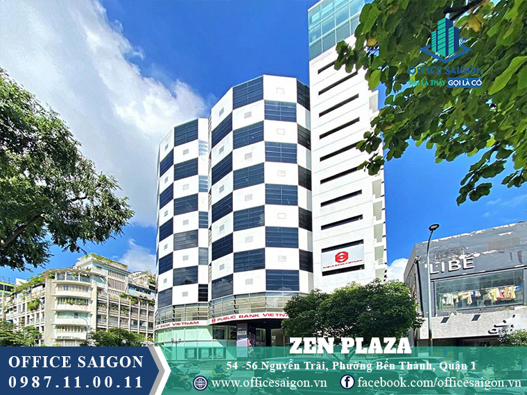 Tòa nhà Zen Plaza là tòa nhà phức hợp bao gồm văn phòng cho thuê và trung tâm thương mại, tọa lạc tại địa chỉ 54–56 Nguyễn Trãi, Phường Bến Thành, (Quận 1) TPHCM, tuyến đường nổi tiếng với hoạt động mua sắm và giải trí. Tòa nhà được trang bị hệ thống tiện nghi hiện đại theo tiêu chuẩn quốc tế. Diện tích cho thuê linh hoạt từ 55m² đến 900m² và giá thuê dao động từ 25–27 USD/m²/tháng.