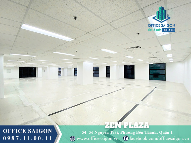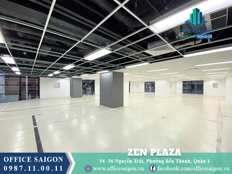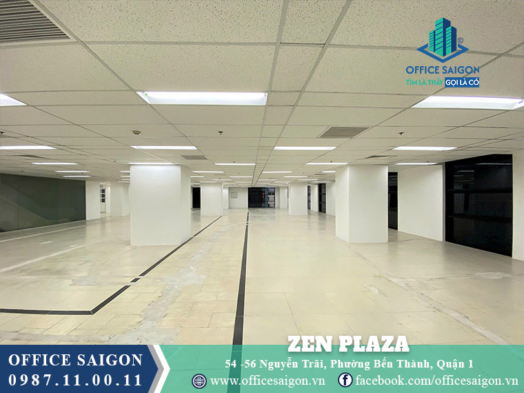 Diện tích sàn tại Zen Plaza là 941m2/sàn (gross) ~ 855 m2/sàn (net), tổng diện tích sàn lên đến 15.056m2 , độ cao trần là 2.4m.
